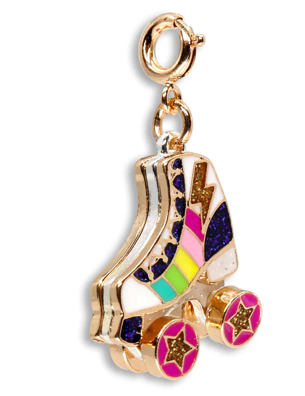 Questo charm a forma di pattini a rotelle glitterati è pronto a far scintillare ogni tua avventura. Allaccia i lacci, lascia la scia di glitter e rotola verso il divertimento! 🛼