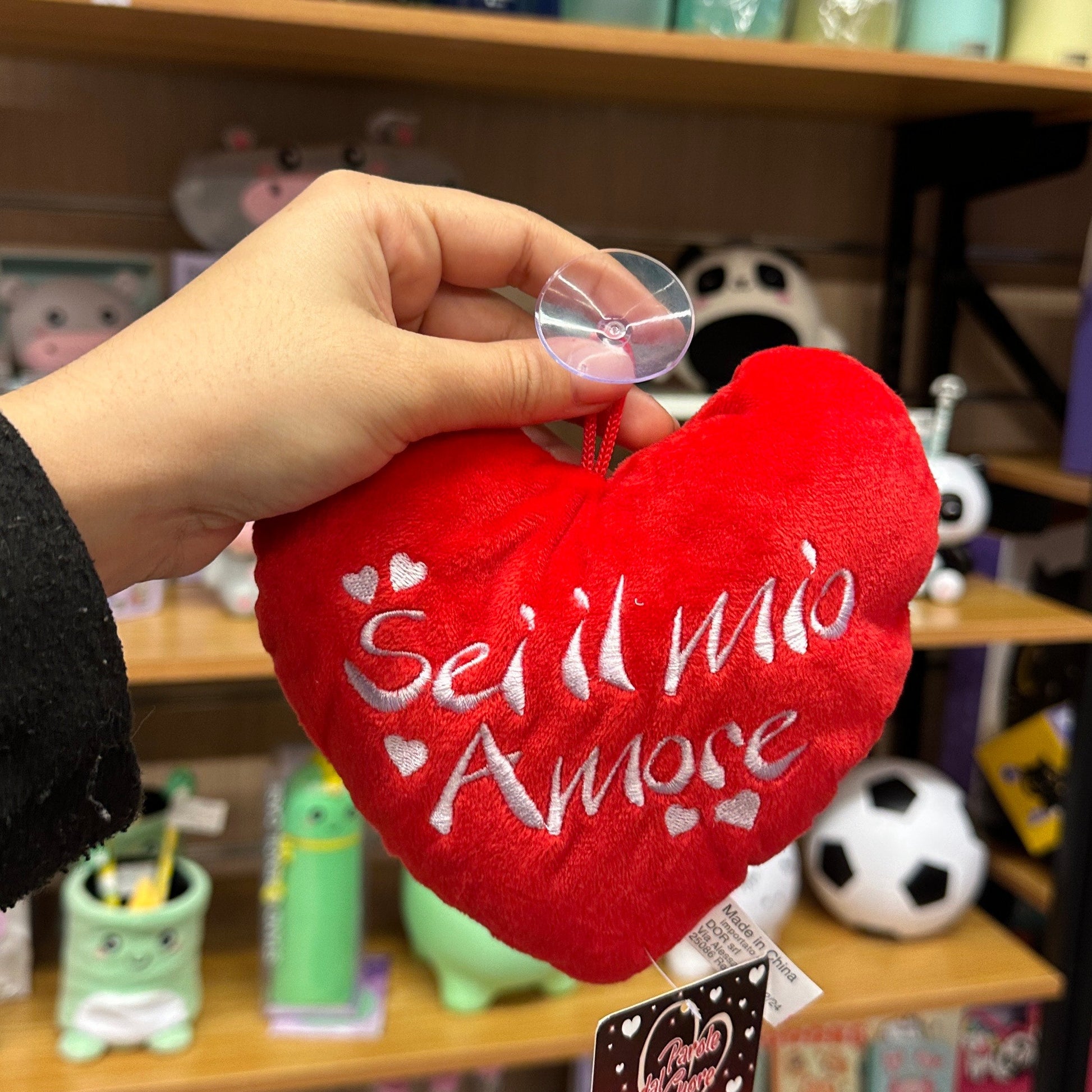 Un cuore super morbido e super tenero, con messaggi d’amore che fanno sorridere! Facile da appendere grazie alla ventosa, è ideale per personalizzare vetri, specchi o vetrine con un tocco romantico e divertente. Perfetto per sorprendere chi ami in modo originale. 💘