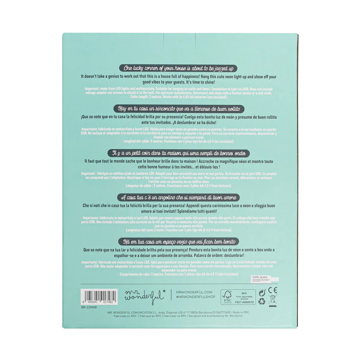Lampada al neon da appendere, con un messaggio accogliente e molto wonder. Può essere appesa sia alle pareti sia alle porte. La lampada è realizzata in metacrilato e luci LED. Si collega alla corrente tramite una porta USB (non include l’adattatore alla presa di corrente né la viteria per il fissaggio o l’ancoraggio alla parete).