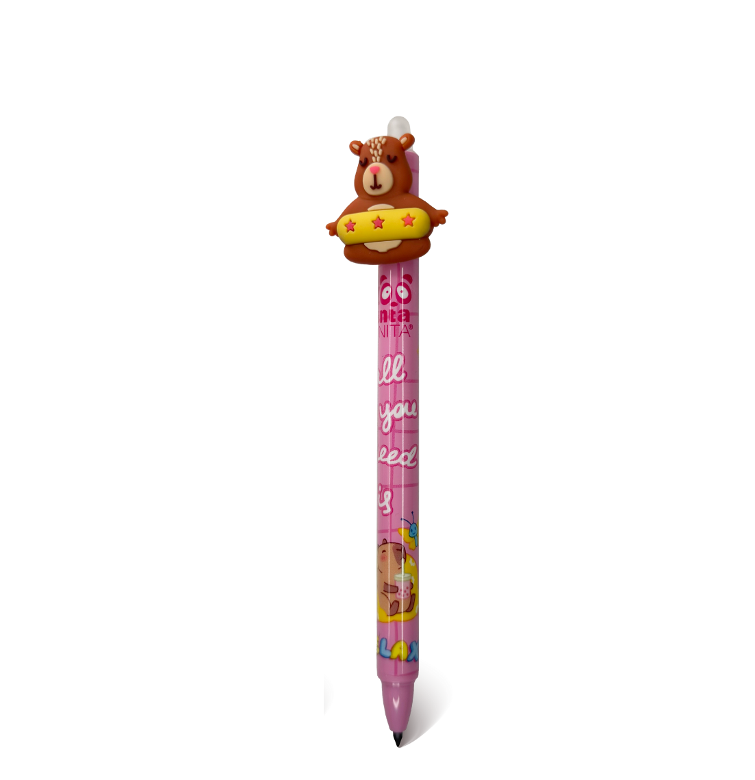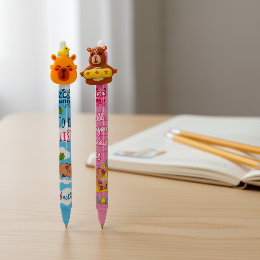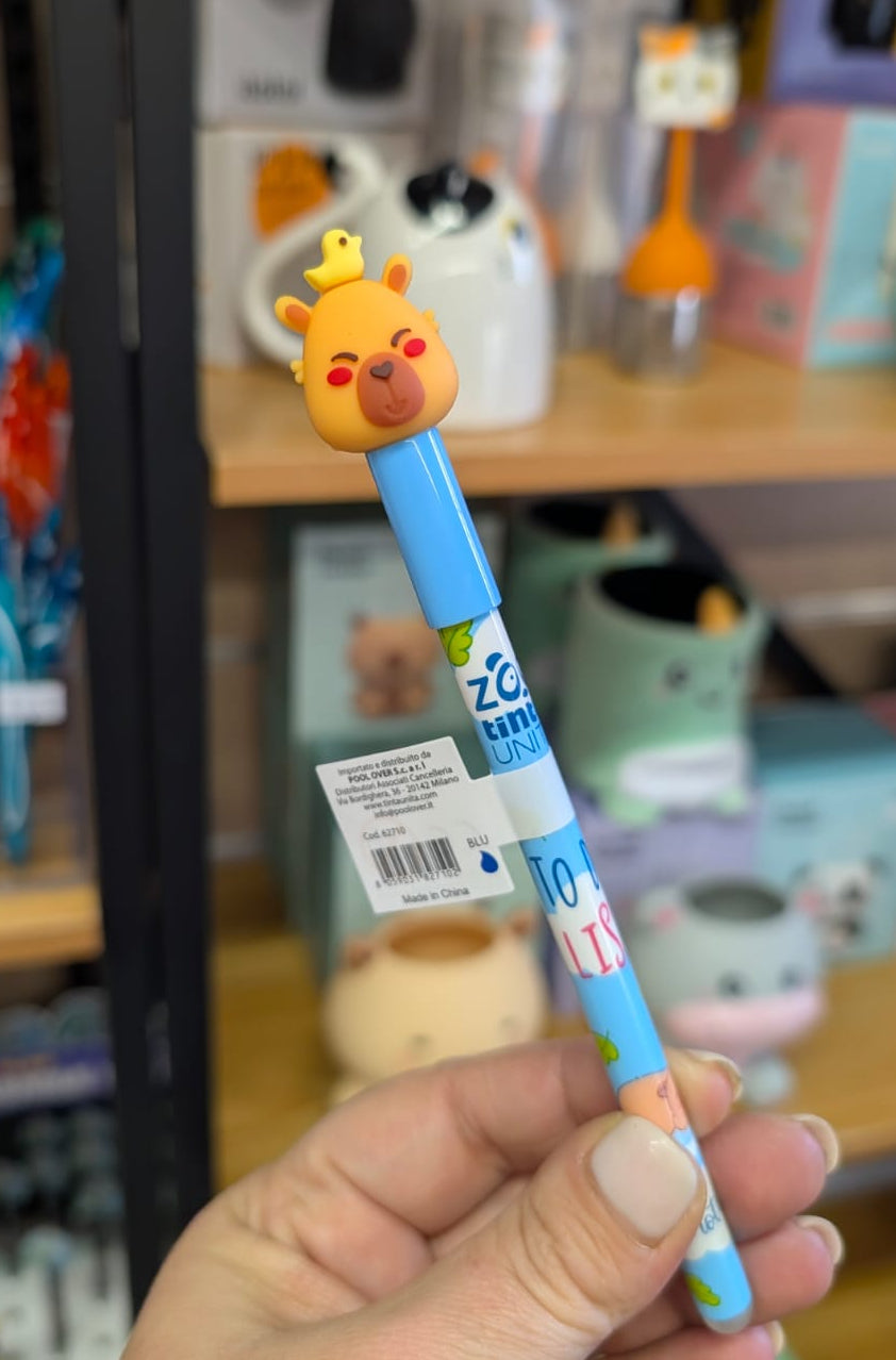 Se esistesse una penna zen, sarebbe lei. La nostra Capybara se ne sta lì, calma e beata, pronta ad accompagnarti tra compiti, appunti e scarabocchi… senza mai stressarsi.