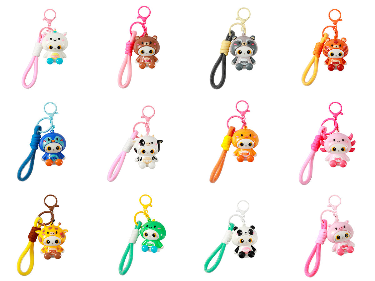 Colorati, divertenti e tutti da collezionare! I portachiavi Hoodie hanno come soggetto un simpatico gattino, reso ancora più irresistibile dai suoi vestitini a forma di altri animaletti. Ogni personaggio indossa un costume diverso, creando un mix originale e super tenero.