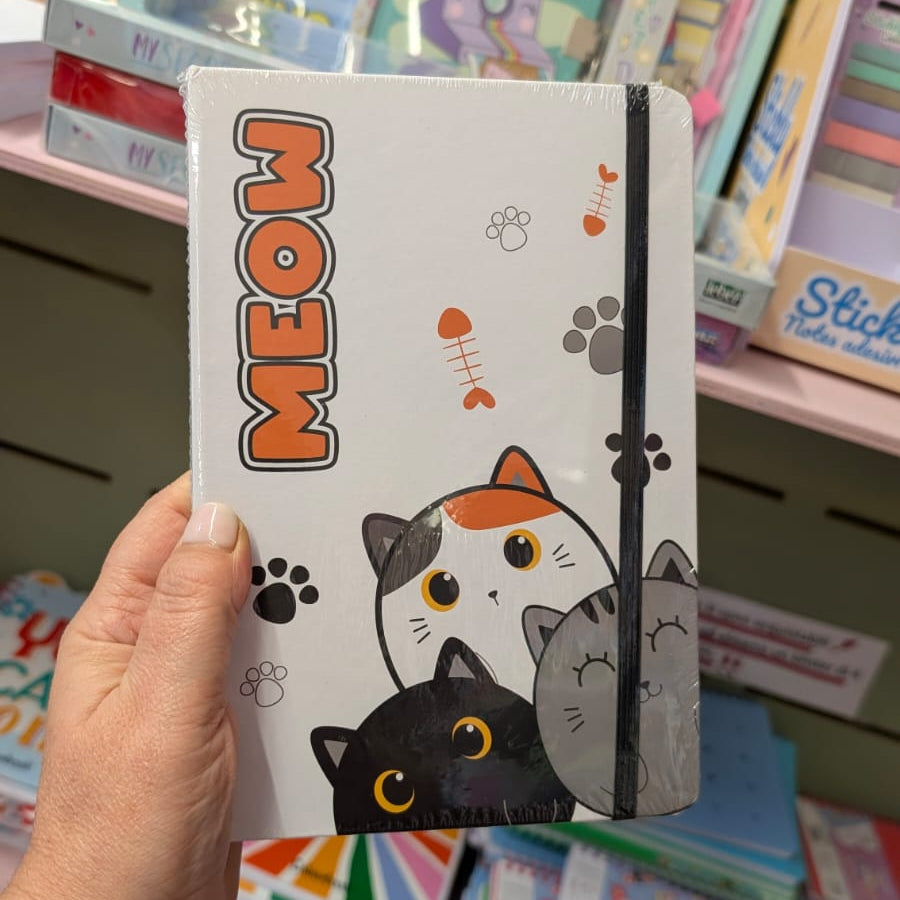 Rendi ogni appunto più divertente con il quaderno A5 “Meow”, perfetto per gli amanti dei gatti e dello stile kawaii. La copertina presenta una simpatica illustrazione di tre gattini dai colori delicati, arricchita da dettagli grafici come impronte e lische di pesce. Il tutto è completato da un pratico elastico di chiusura che mantiene il quaderno sempre in ordine.