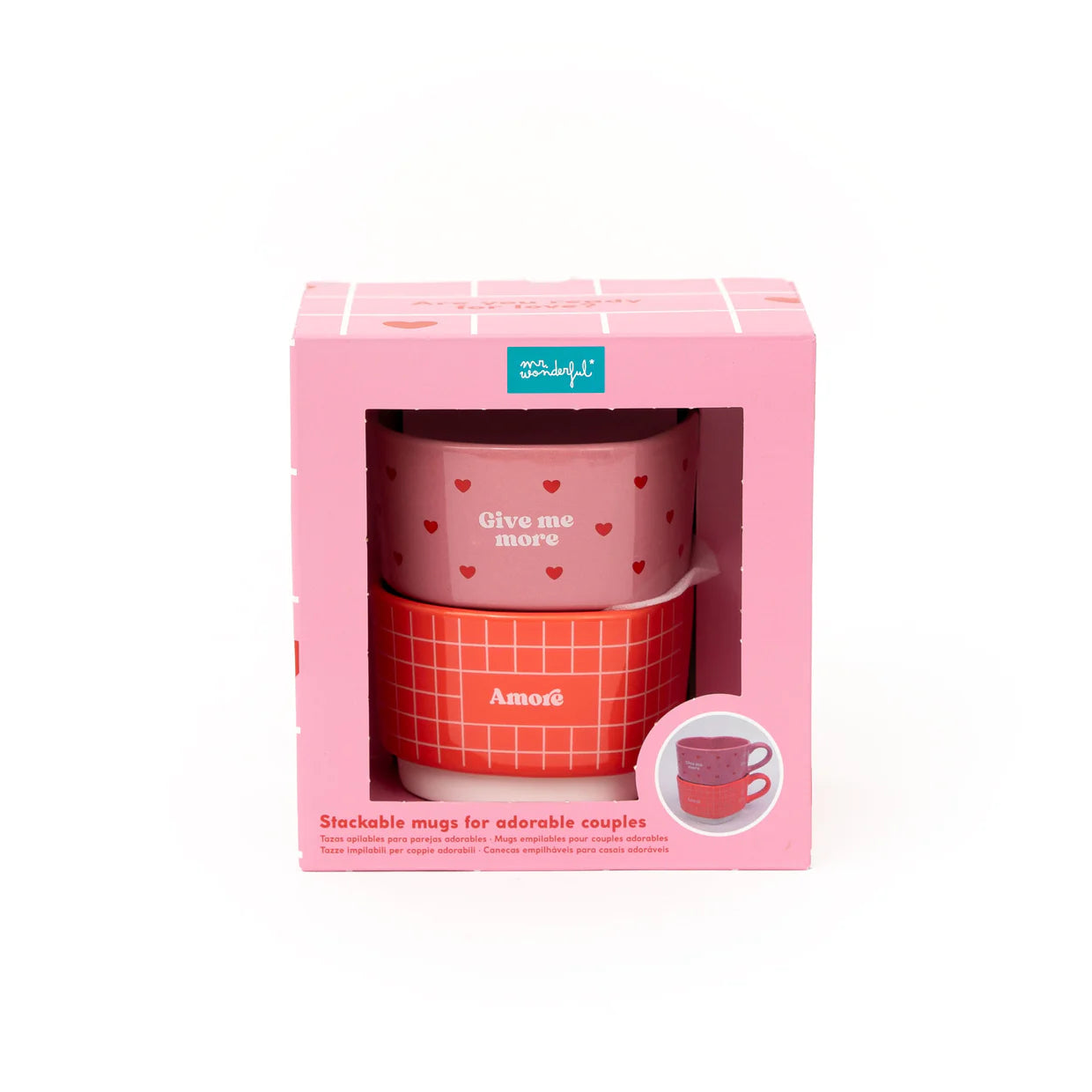 Set composto da due tazze in ceramica da 310 ml ciascuna, con un messaggio d’amore condiviso, molto divertente, ideale da regalare in coppia.